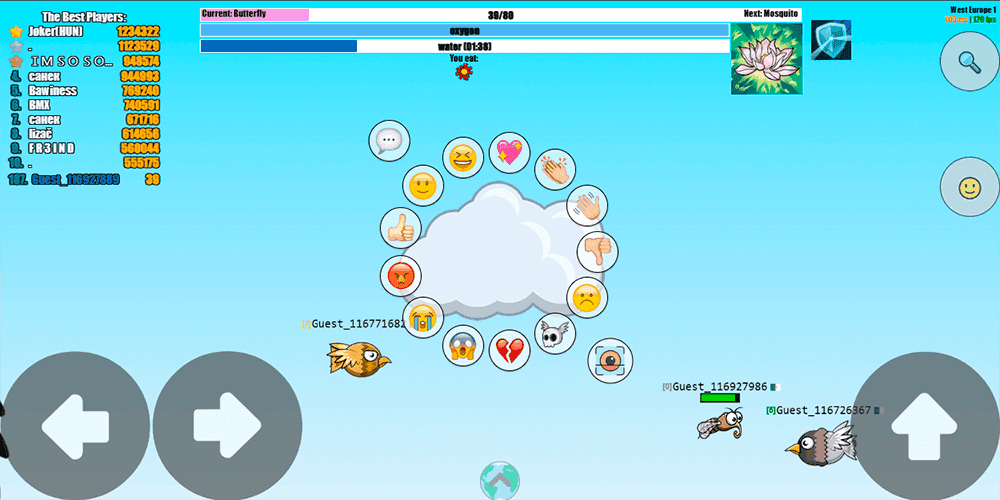 The shared online arena is where EvoWorld.io truly finds its identity. The map spans multiple biomes, each with a distinct landscape and different prey to hunt. You can fly into space, burrow deep underground for hidden resources, or stick to surface-level fields and forests. Clouds and bushes serve as hiding spots where you can duck out of sight, creating opportunities for ambushes and narrow escapes alike. The world encourages constant movement and exploration, and staying in one place for too long is a reliable way to get eaten. Underground areas offer rich feeding grounds but come with limited mobility, while open skies provide speed at the cost of making you an obvious target for larger predators. Every zone presents its own risk-reward calculation.