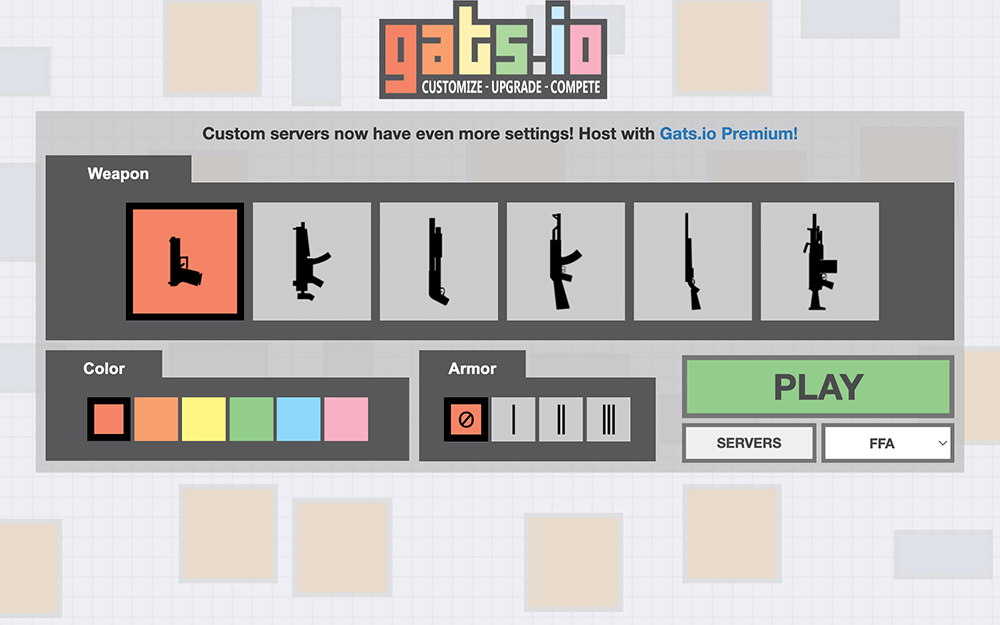 Gats.io is a vivid example of a successful shooter and IO game, actively attracting fans of shooters. The game features an arena with many hiding places, a choice of weapons, as well as armor (which can affect the speed of movement).