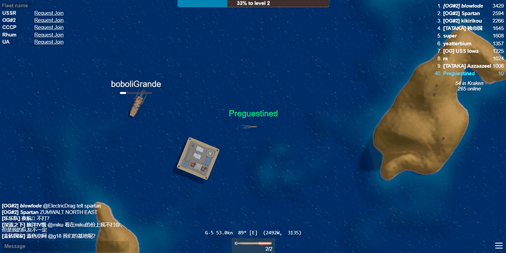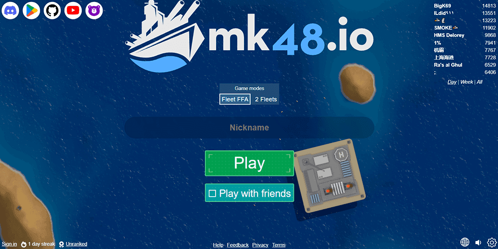 What separates Mk48.io from typical arcade chaos is how much positioning and prediction matter. Torpedoes punish anyone who sails in straight lines. Duels reward the captain who shoots at where the enemy will be, not where they are. Stopping to aim is a confession, and confessions get punished. Over time you develop instincts: keeping escape lanes open, avoiding corners where you get boxed in, baiting bad shots and punishing reload windows, circling instead of charging head-on. The game rewards patience and aggression in equal measure. You can hug the edges and grow slowly but steadily, or push toward contested zones where the fastest growth sits right next to the fastest death. Joining a fleet through the in-game panel adds coordinated teamwork to the equation, while the ranking table and point chase feed a competitive appetite. Experienced captains can even venture into the Arctic biome, where trickier terrain and harsher conditions raise the stakes further. Every match starts you small and dares you to become the problem.