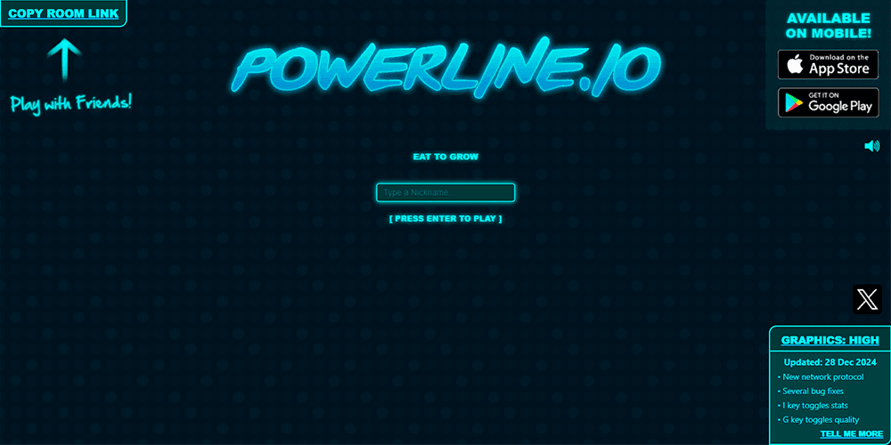 The .io genre has carved out a permanent niche in browser gaming ever since Agar.io exploded onto the scene in 2015, proving that simple mechanics, instant access, and real-time competition could keep players glued to their screens for hours. Since then, the formula has been stretched across dozens of variations — from shooters to territory wars — but the survival-and-growth model that started it all remains a reliable foundation. Powerline.io takes that foundation and sharpens it. This is Snake, stripped of nostalgia and rebuilt as a neon-drenched arena brawler where every second carries the threat of instant death. The objective is familiar on the surface: collect energy, grow longer, avoid collisions, and force rivals to crash into your glowing trail. But Powerline.io pushes that concept into faster, more aggressive territory, where leaderboard dominance depends not on patience alone but on precision, nerve, and knowing exactly when to strike. Among the crowded field of .io survival games, it stands out by making every single run feel like a tightrope walk over a pit of your own ambition.