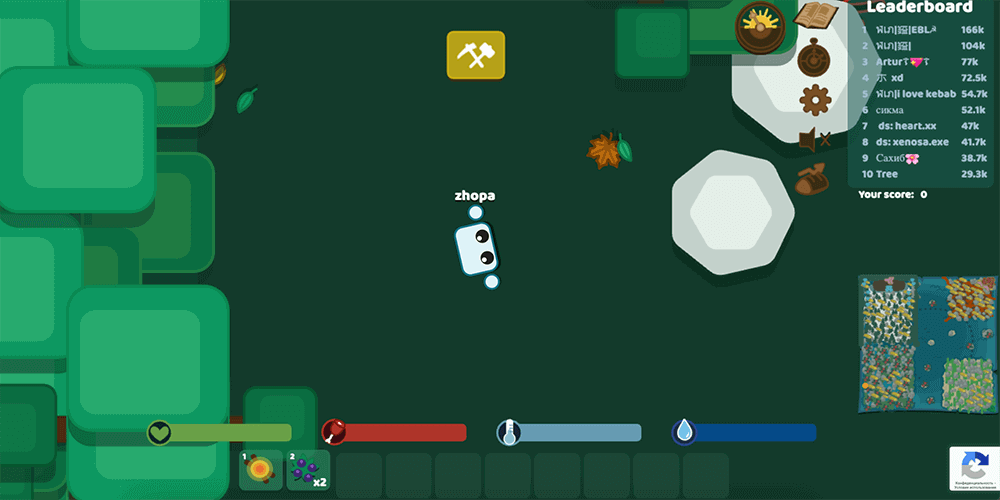 Starve.io allows you to plunge into the harsh world of survival, solving the tasks of replenishing many resources at the same time. All this will have to be done on a large-scale map with other players, who are no less dangerous than the various monsters inhabiting the territory.