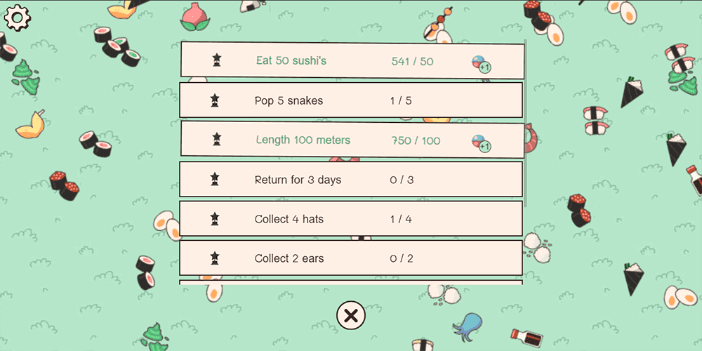 Visually, Sushi Party draws heavily from Japanese Kawaii culture, and it shows in every detail. The snakes are colorful, expressive, and genuinely adorable, each one brimming with personality through soft art design and playful animations. This aesthetic does more than just look good. It actively softens the tension that snake survival games typically carry. Getting eliminated feels less punishing and more like a reason to laugh and jump back in. The friendly atmosphere makes Sushi Party one of the more welcoming entries in a genre that can sometimes feel ruthless.