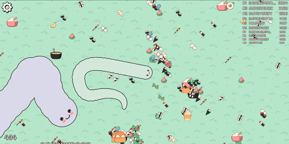 The main competitive hook is a live leaderboard that tracks the largest snakes in the arena at any given moment. Cracking the top ten becomes a clear, visible goal that pushes players to take calculated risks, hunt down weakened opponents, and defend their rank against challengers. It adds just enough competitive pressure to keep matches exciting without overwhelming players who are simply there to have a good time. Developed by Terminarch Games, a small Netherlands-based studio with roots in the flash game era, Sushi Party is a polished and lightweight multiplayer experience that works equally well for five-minute casual sessions and extended score-chasing runs.